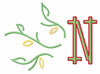 Monogram CombinationsUnique Monograms combining multiple styles. ![]() Monogram Styles Used:Monogram: N For this monogram we wanted something decorative and simple to accompany the letter N from the Folk Art Monogram Set, which is a squarish satin stitch letter that has a fancy stitch border all around. We chose the embellishments from Art Nouveau Monogram Set 6. We made a combination of three elements, rotating each one a bit into a stylized "bouquet". Initially intending to make a mirrored copy of this element to put to the right of the letter, we decided that the unbalanced look of just the embellishments to the left of the letter was interesting as it was. The overall size is 4 1/2" (115mm) tall by 6 1/8" (156mm) wide. How we made these monogramsEmbroidery software programs make it easy to delete elements, copy and paste elements from other designs, resize different aspects, and merge elements together into one new design. Each program is a bit different in how the Edit functions are managed. Once you have learned to use yours, creating new monograms from other monogram parts is creative and fun. Experiment with different arrangements and colors. |
